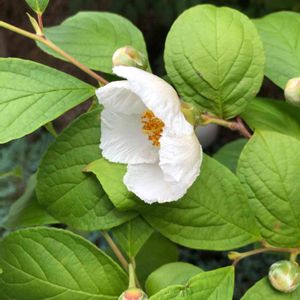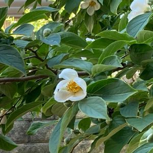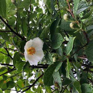 おはようございます😊🎶朝の散歩で ナツツバキ沢山咲いていました つぼみが、コロッと真珠見たいで かわいい💕沙羅双樹(さらそうじゆ)