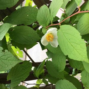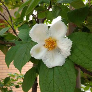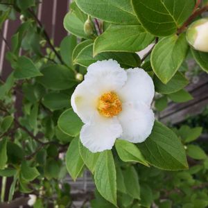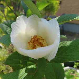 おはようございます☺️ 今日も朝から快晴で暑くなりそうです。 「ナツツバキ」 我が家のナツツバキがやっと一輪咲きました。でも一日花で儚い命です。 撮影日 2020.6.23