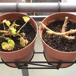 高温障害が進みすぎた結果… こんな無残な姿に😱 左はノンブランドのゼラニウム。 右はここでも投稿したことのある PWのスーパーゼラニウム。 左の株はまだあんまり大きくないので分かるんやけど、 PWの株は一体どうしたんや💦 タグで「真夏を越える最強ハイブリッド」と 謳ってらっしゃるが、完敗やないですかー!! 北米ブランドの暑さの定義は甘いんだろうか。 PWのは新芽の様子が無いので心づもりだけしとこう😢