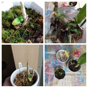 四條畷市フラワーショップ友 待ちに待った月曜日✨ 大きなシンビジュームやデンドロビウム増えてました😳 が、原チャリには乗せて帰れない😭😭ミニデンドロビウムグリーン愛は花付き600円だったけど家にいるので見送り、ミニデンファレセレナーデと名無しデンファレ購入。石斛大江丸おまけしてくれた☺️ セレナーデは、復活中のメリーファンタジーと一緒にシュロ縄ガラスコップヘ(右上)。 大江丸は水苔新しく替えて、鉢もサイズダウン。 元気にな〜れ〜🤩