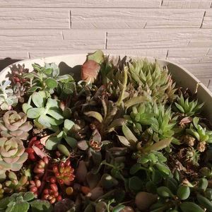 数年前の多肉寄植えを解体し、昨年のカット多肉達も根付いたので一緒に寄せて…かわいい😍