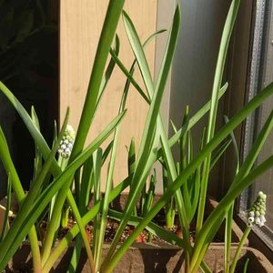 室内のムスカリ、早いコは咲き始めました😍 遅いコはツンツン芽が出たばかり。