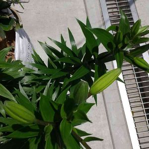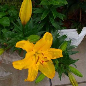 鉢植えスカシユリ咲いた💞 まだ蕾あるし、この豪雨じゃ仕方ない…。
