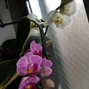 とっても大きなお花のピンク胡蝶蘭💞 一昨年の母の日のお下りです。昨年、今年と4~5月に咲いてくれる☺️ 私の写真の腕の無さと外に向かって咲いてる事と狭い事でこんなですが綺麗です😄