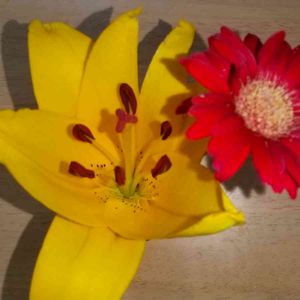雨の晴れ間にゴソゴソ鉢をあっちがいいかな。こっちかな。と動かしていたらお尻でスカシユリの蕾がポキっと😱😱😱 ヒェェ、ごめんなさい💦💦🙇 コップに生けたら開いてくれました😍 スカシユリ1番先に咲いたのは黄色🥰