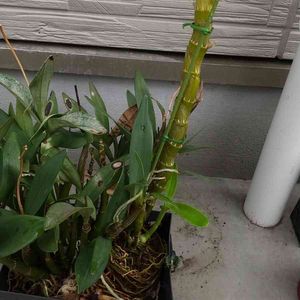 デンドロビウムとキンギアナムの新芽が大きくなってきました😄 昨年は南側のベランダで葉焼けしてしまったので今年は家の東側、グリーンカーテン越し太陽当たる場所で様子見てみます😄