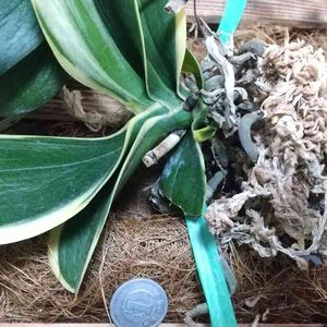 花茎出てきてました。 1枚目と2枚目の間に見えますが、3枚目と4枚目の間から出ていて、伸びて来ない…?と待っていたら、葉っぱの真ん中突き破って出てきました👀 以前、違う胡蝶蘭で突き破られた方の葉っぱが途中で枯れてしまったので心配💦💦水やり慎重にしよう😚 花茎、嬉しいな💞