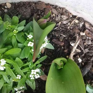 スカシユリ😆💞半年の沈黙から…出てきた〜。良かった🥰 そして、1月に植えたムスカリ!!蕾がある😍チューリップ楽しみ💞 ヒヤシンスの水耕栽培はカビが怖くてこちらに植えました😆