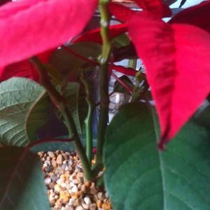 ポインセチアに新芽が出てるぅ~😍 もともとあった葉っぱも、結構落ちて心配してたのだけど新芽が出たから少し安心😊
