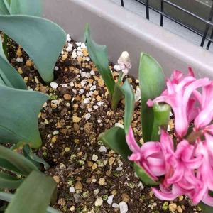 1月8日購入して、2月末まで球根を水苔に包んだちっちゃい容れ物のまま野菜室。2月末から鹿沼土に植え込み、上に水苔少々。乾いたら霧吹きでお水🚿4本も芽が出た🤩あと1個、諦めず待ちます☺️