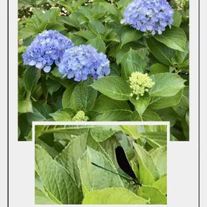 🌱アジサイ🌱 ♡ハグロトンボ(♀️)♡ (♀️)の腹色は黒で、(♂️)との区別が出来ます。 🦋みたいにヒラヒラ飛んでいます。
