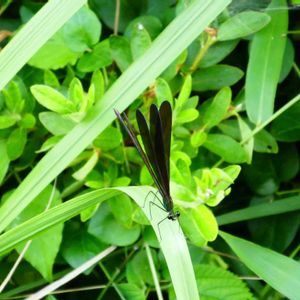 草っ原にハグロトンボがヒラヒラ。 毎年同じ場所にやってくる。