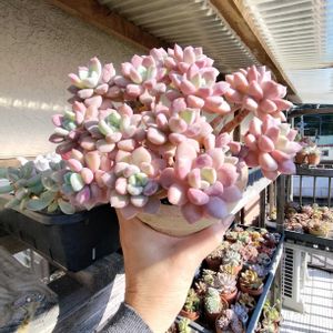 出窓に移動させた多肉 シャルドネがいい感じのスモーキーピンク色 室内でももう少し保って欲しいな