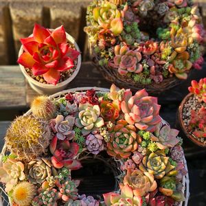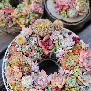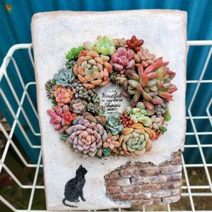 リース型の多肉の寄せ植えが 残念な見た目💦 敗因は夏の間の水遣りが足りなかったようで😰 枯れ葉がびっちり! 多肉を全部外してひっくり返して見たら、セリアのゼリー型だった。 そう言えば最近は見かけなくなりました😂 可愛いのにね〜 枯れ葉を取って可愛い多肉を足して ギュギュッと寄せ直ししました。