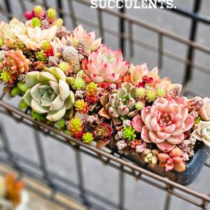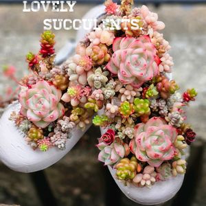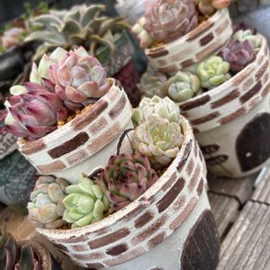 多肉植物の寄せ植えは チープな器でも遊び心で楽しめます。 何に植えても可愛いですね〜