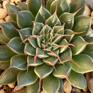 こんにちは! 今のところは、まだ穏やかな天気です! 朝から屋外組を屋内に避難させました! グラプトベリア:シルバースター 爪💅が赤くなっています!