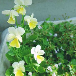 ビオラの寄せ植えを解体して、 切り花として二度楽しんでおります。