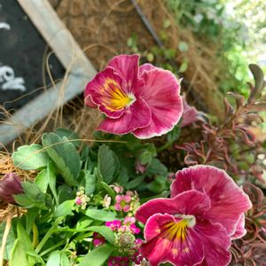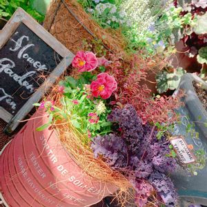 先程のpic、手前の寄せ植えも作っちゃいました❤️ 今回はちょっと雰囲気を変えて😁❣️ 赤いヴィオラは「乙女ごころ」 昨年も淡いピンク色のを植えたけど、今年は色の濃い物を選んで寄せてみました✨ biohazardのドラム缶に見えるのは私だけか…🤣💦💦ww