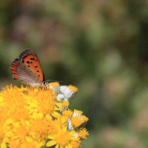 おもてなし💛 白妙菊の花にお客様💕 ビヨーンと伸びて切ろうと思ってたけど、もう少しそのままにしておきますね。 ごゆっくりどうぞ☺️