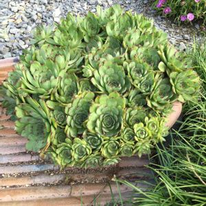 お散歩で見つけたもの🎵 いつもの曲がり角をまっすぐ行ったら発見❣️ 直径50㎝以上ありそうな鉢にモリモリ🌳🌳