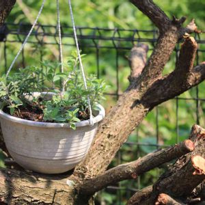 お花を吊るして💙 家を建てた頃植えたおんこの木、枝がとなりに伸びること1.5mくらい。庭や花壇に日も当たらなかったのでかわいそうだけど枝を全部バッサリ切りました。陽の当たるようになった花壇、何を植えようか?それまでは鉢花でも飾って楽しみます🎵