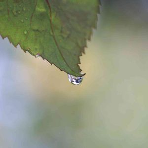 雨上がり、バラの葉っぱの水滴にバラの花を写り込ませようと思ったのに…どうすりゃいいの? どうやら家の二階が写り込んでる🤔