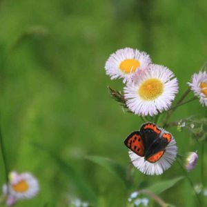 道ばたで -2- ハルジオンに蝶が✨ 羽を閉じたり広げたり、クルリと向きを変えたり 中々のモデルっぷり🎵