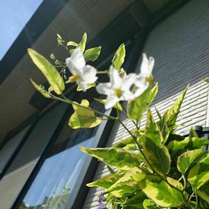 お盆が終わり…今までの暑さが 少し和らいできましたね😅 久しぶりの投稿になります✋ 🌱ハナナス🌱の白い花が咲きました☺ 垂れ下がっているため💦💦 思いっきり下から見上げて撮りましたよ〜😁