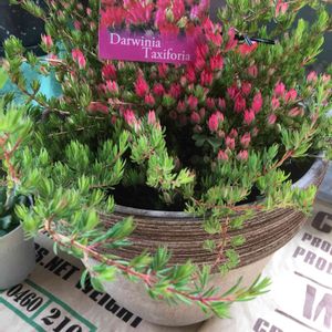 ダーウィニア タクシーフォリア オーストラリアプランツです🇦🇺 GSでステキだなあと思ってたら、出会ってしまったんです✨✨💕 独特の枝ぶりとそこにまとまってついているお花がとってもキュートです‼️ オージープランツ苦手なのになぁ〜😅😅 頑張って育ててみたいと思います💪