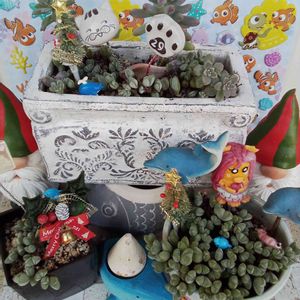 こんにちは♡ 先日、強風が吹いて ベランダの多肉棚が倒れて 被害にあった トトさん🐟 イルカさん🐬 仕立て直しのついでに 全部分解して 挿し直し✂️ 一カ月も経ってないのにもう 元気に成長してます オレンジ鉢🧡 このトトさんは🐟 まだ仕立て直ししてないのだけど このままいくか 悩むのよね😅