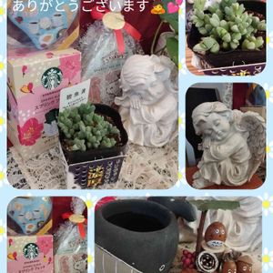 こんにちは😊 ミールンさんから、素敵便🎁❤️が届きました。 エンジェル👼ちゃんの置物、可愛い缶のお菓子やクジラ🐳の鉢にトトちゃん🐟🐟🐟、などなど、箱- ̗̀📦 ̖́-いっぱいの贈り物に感謝でいっぱいです🙇♀️🙏 ミールンさん、本当にありがとうございました(* ᴗ͈ˬᴗ͈)”💕