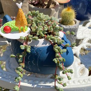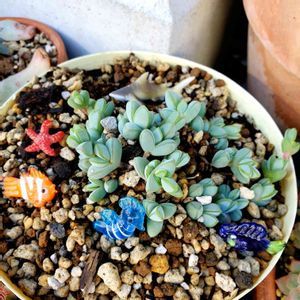 お友達がセリアの陶器に穴を開けて プレゼントしてくれました 何を植えようか悩んだ挙げ句 我が家で初めての碧魚連を うまく育ちますように 緑に赤と黄色で金平糖みたい✨ 🏷トトの日に参加させていただきます