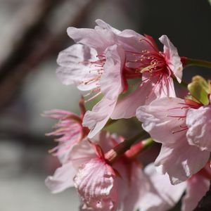 🌸玉縄桜(タマナワザクラ)が咲き出しました。 玉縄桜は1969(昭和44)年に神奈川県鎌倉市にある神奈川県立フラワーセンター大船植物園でソメイヨシノの中から早く開花する個体を選んで育成されたサクラで、1990年(平成2年)に品種登録された園芸品種です。 ソメイヨシノより一か月ほど早く開花し2月下旬から3月下旬までと開花時期が長いのが特徴です。 名称の由来は植物園近くにかってあった玉縄城からだそうです。 原木はフラワーセンター大船植物園内にありますが2019年9月の台風15号で根元から倒れてしまう危機がありましたが蘇っております。 『🏷️桃色百花繚乱』 『🏷️2024年櫻鐵のサクラコレクション』