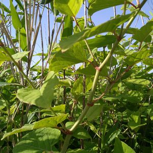 イタドリでは?と言う人が。土手とか、平地の雑草の中とか、アチラコチラに生えています。