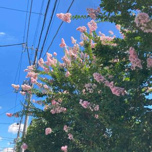 今日のお花「サルスベリ」です。🐒🤭 先日、お天気の良い日に桜通りにて薄ピンク色のお花「サルスベリ(百日紅)」をパチリ!📸💙🌸🌿😊😄🤗✌️ 『百日紅 色鮮やかな 夏の道』調いました。by Yumetaro.🌞