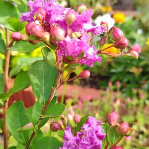 ようやく咲き出した百日紅さん🎶まだふた枝だけですが🥰 零れ種で芽吹いたシレネさん達は間引いた方が良いのかしら?🌱🌱🌱🌱🌱