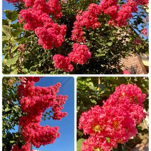 涼し気な写真の次に恐縮ですが こちらは朝一番デッキから写した満開の百日紅です …雲一つ無い晴天です!😅 🏷ピンクワールドへようこそ…♡