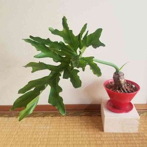 葉っぱ好きとしては堪らない 観葉植物の王様セロームさん。 この子はまだまだ王子さまかな。 ちょこんと新芽も動いている。 ○フィロデンドロン セローム サトイモ科の常緑多年草。大型で切れ込みが入った葉の造形が印象的な観葉植物。和名は海星葛(ヒトデカズラ)。「カズラ」は「つる草」を意味する。ブラジルやパラグアイなどの熱帯アメリカの自生地では4メートルほどにもなる。耐寒性5℃。