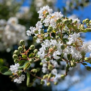 爽やかに咲く白色の サルスベリ🤍🌿 夏の花木の代表ですね♬