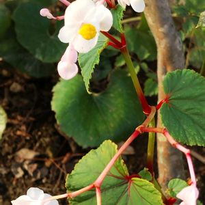 こんにちは😊 ピンク色に遅れて 白色秋海棠が 咲きました。 好きなお花なので可愛いです。