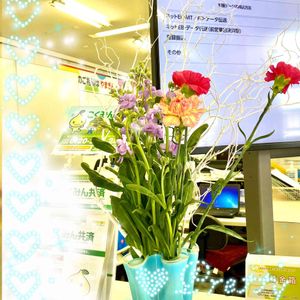 🍒Y銀行窓口の今週のおもてなし花💐 白塗りの枝はミズキかねぇ(˙˙*)? え~と…団子の木のミズキ……🤔