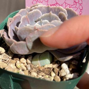 こんにちわ✿*゚ オリオン📛でお迎えした謎多肉さんの下を覗いたら🧐 どちら様⁉️( ˙◊˙ ノ )ノ 子株⁉ 別の子のようなお姿ね😳 植替えは春頃の予定だけど気になる気になる|ू•ω•)チラッ