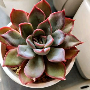 多肉いろいろ⁺⊹˚.⋆ 大雨の日以外は ほぼ雨ざらし この状態が良いのか悪いのかさえも よくわからない… 何年経っても初心者です 笑 5枚目 オーロラが紅葉して真っ赤 これはオットが植えたもの 七宝樹がメインだったはずが 「これ少しちょうだい」っておねだりされてあげたオーロラが勢力拡大中 入れ物は ごつい壺みたいなやつで なかなかにワイルド 笑