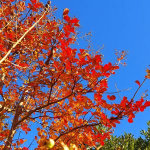 ミソハギ科 サルスベリ属 中国南部 原産 落葉中高木 最後の花が散ったのは ついこの間のこと 夏の初め頃から 長く その花を咲かせ続け ようやく一休み といったところでしょうか。 鮮やかな鮮紅色 少し黄味がかり それが一層 明るい紅に みせていますね。 紅葉や銀杏 ハゼノキなど みどりの色素が壊され 個々に存在するその場所で 己の常とは違う色を纏い その時を待ちます。 古来より珍重された紅色 燃え上がる炎のような この色に私たちは 元気や勇気 そして いまだどこかにある 情熱を呼び覚まされる のではないでしょうか… 今日1日 お疲れ様でした。