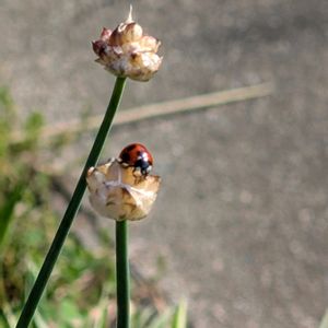 ノビルとテントウムシ おっとっと! バランス崩した?