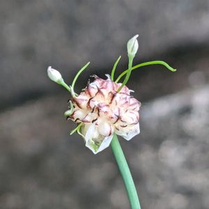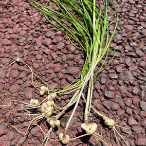 これから咲く花もかわいいのですが、心を鬼にして花茎を摘みました 葱坊主の子分みたいでかわいい 真珠の粒のような鱗茎(球根)も 目で堪能したあとは、おまちかね、お口で賞味します 花茎かてぇ😬 摘む時期間違えたかな💦 店で売られるニンニクの芽のような太さがないので、スジが多くて硬かった💦