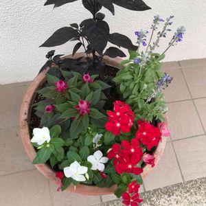 こんばんは。 この前、葉っぱがカラカラになってしまっていた日々草です。 雨の中綺麗に咲いています🌸