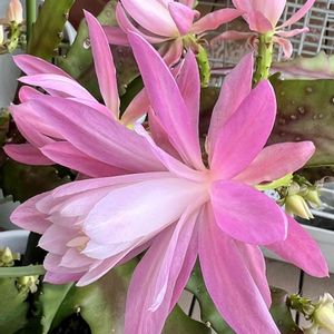 ⭐️クジャクサボテン-みなとまつり⭐️ 今年もどうにか花数は少ないけど 咲きました😅 並んだ花がかわいい😍💕 多肉植物でもあるから 来年はもう少し花数増えればいいなぁ〜 頑張ろう💪