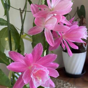 わが家のクジャクサボテン みなとまつり〜🩷 幻のお花と言われているらしいですが(なぜかは分かりません😅) 去年の夏頃に姉からもらってきましたが、こんなにお花が咲いたのは私は初めて♡ 姉に見せたら「わぁ〜💕返して欲しい。」って😁 姉のところのもこんなに咲いてないようです🤭 このお花の名前 みなとまつり 初めて知りました😅