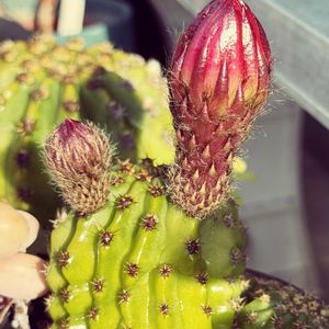 ツヤツヤ〜✨ 今日にも咲きそうな サボテンのつぼみ❣️ 2枚目 クジャクサボテン✨ つぼみが開いてきて、華やか〜